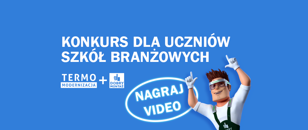 Rusza konkurs dla szkół w ramach kampanii „TERMOMODERNIZACJA+DOBRY MONTAŻ”. Zadanie? Nagranie krótkiego video, które pokazuje produkty Partnerów kampanii. Pula nagród to 4000 PLN + zestawy gadżetów. Zapraszamy do udziału! 📌 Kto może wziąć udział w konkursie? Zespoły uczniów (min. 4 osoby) z jednej szkoły lub klasy, pod opieką nauczyciela/wychowawcy 🎥