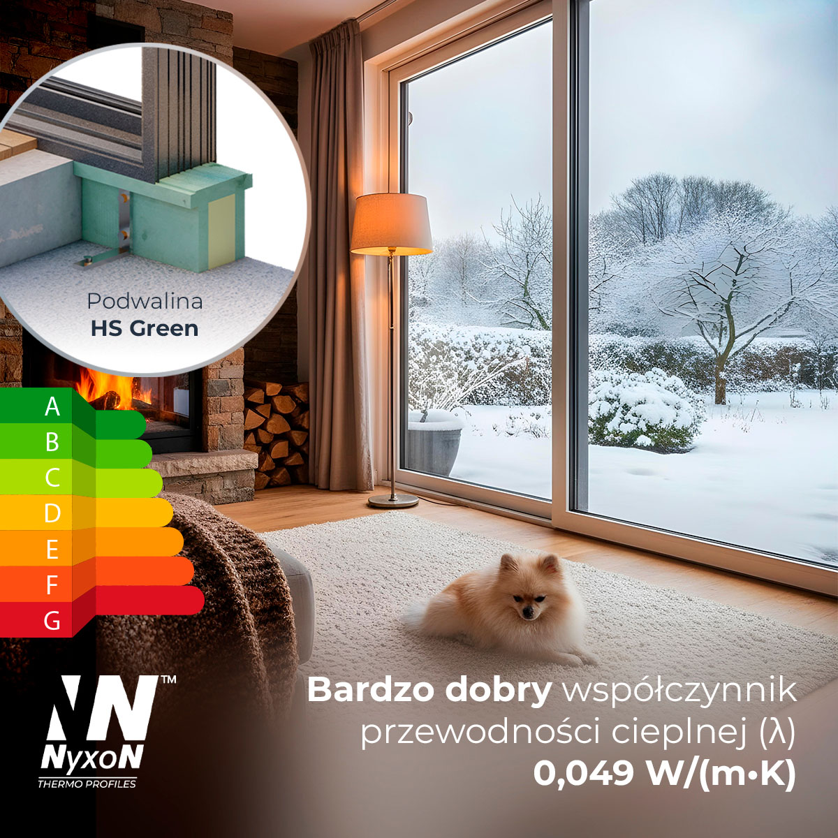 Belka okienna Green i HS Green, wspierane XPS, zapewniają doskonałą izolację i eliminują mostki termiczne. Stabilny montaż stolarki ogranicza wilgoć i pleśń, co wpływa na jakość powietrza w naszych pomieszczeniach. Lepsza izolacja to mniejsze straty ciepła, gwarancja utrzymania stabilnej temperatury wnętrza i mniejsze zużycie energii na ogrzewanie. Energooszczędne budownictwo – pośrednio wspiera „czystsze powietrze” w naszym otoczeniu.