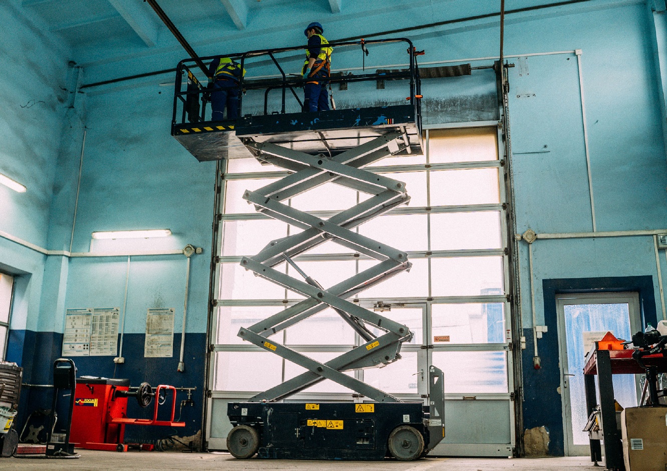 Brama pracująca w serwisie opon była wyposażona w napęd ręczny
