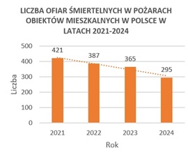 Rys. PSPS: Liczba ofiar pożarów obiektów mieszkalnych w latach 2021-2024 (Dane: KGPSP)