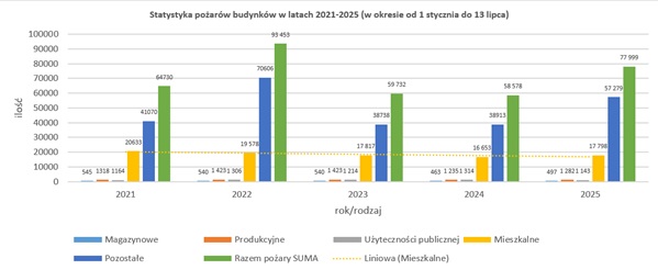 Rys. PSPS: Statystyka pożarów w latach 2021-2025 w okresie od 1 stycznia do 13 lipca (Dane: KGPSP)