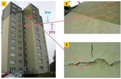 Zdjęcia 1-3: Spękania na łączeniach styropianu i wełny. P. Zemene, Czeskie Stowarzyszenie Producentów Styropianu