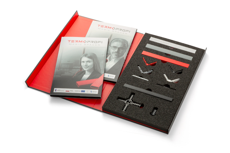 Ciepła ramka TermoProfi minimalizuje mostki termiczne na obrzeżach szyb, stabilizuje temperaturę wewnątrz pomieszczeń oraz redukuje straty energii. W praktyce oznacza to niższe rachunki za ogrzewanie oraz lepszy komfort przez cały rok. Mniej kondensacji – więcej zdrowego klimatu w domu. Zastosowanie ramki TermoProfi zmniejsza ryzyko kondensacji pary wodnej na obrzeżach szyb nawet do 70%, a więc ogranicza problem zawilgocenia oraz ryzyko powstawania pleśni. To rozwiązanie szczególnie istotne w domach energooszczędnych, pasywnych i po termomodernizacji. Ciepła ramka TermoProfi wykonana jest z zaawansowanego kompozytu FIBERTHERM, który łączy wysoką sztywność i stabilność z bardzo dobrymi parametrami izolacyjności. Dzięki przemyślanej geometrii sprawdza się perfekcyjnie w produkcji szyb wielokomorowych. TermoProfi oferuje cztery linie ciepłych ramek dystansowych: