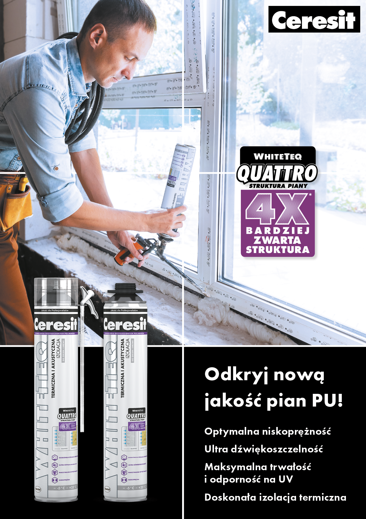 Nie jest tak, że unikalność piany Whiteteq powoduje zatracenie typowych cech do których przyzwyczajony jest polski budowlaniec. Adhezja czyli właściwości „łapania” przyczepności w warunkach zapylonych powierzchni typowo budowlanych jest na bardzo wysokim poziomie. Nie trzeba specjalnie się starać aby czyścić na „lustro” klejone/uszczelniane powierzchnie; adhezja i tak zostanie „złapana” i zapewnione będzie trwałe połączenie tym bardziej, że wcześniej przytaczana wysoka zwartość i jednorodność struktury daje wysoką kohezję czyli spójność wewnętrzną utwardzonej piany Whiteteq. Tak więc jeśli oczekujmy przyklejania parapetów itp. podobnych rzeczy, które zwykło się kleić jednoskładnikową pianą to wykonawca trafić lepiej nie może.