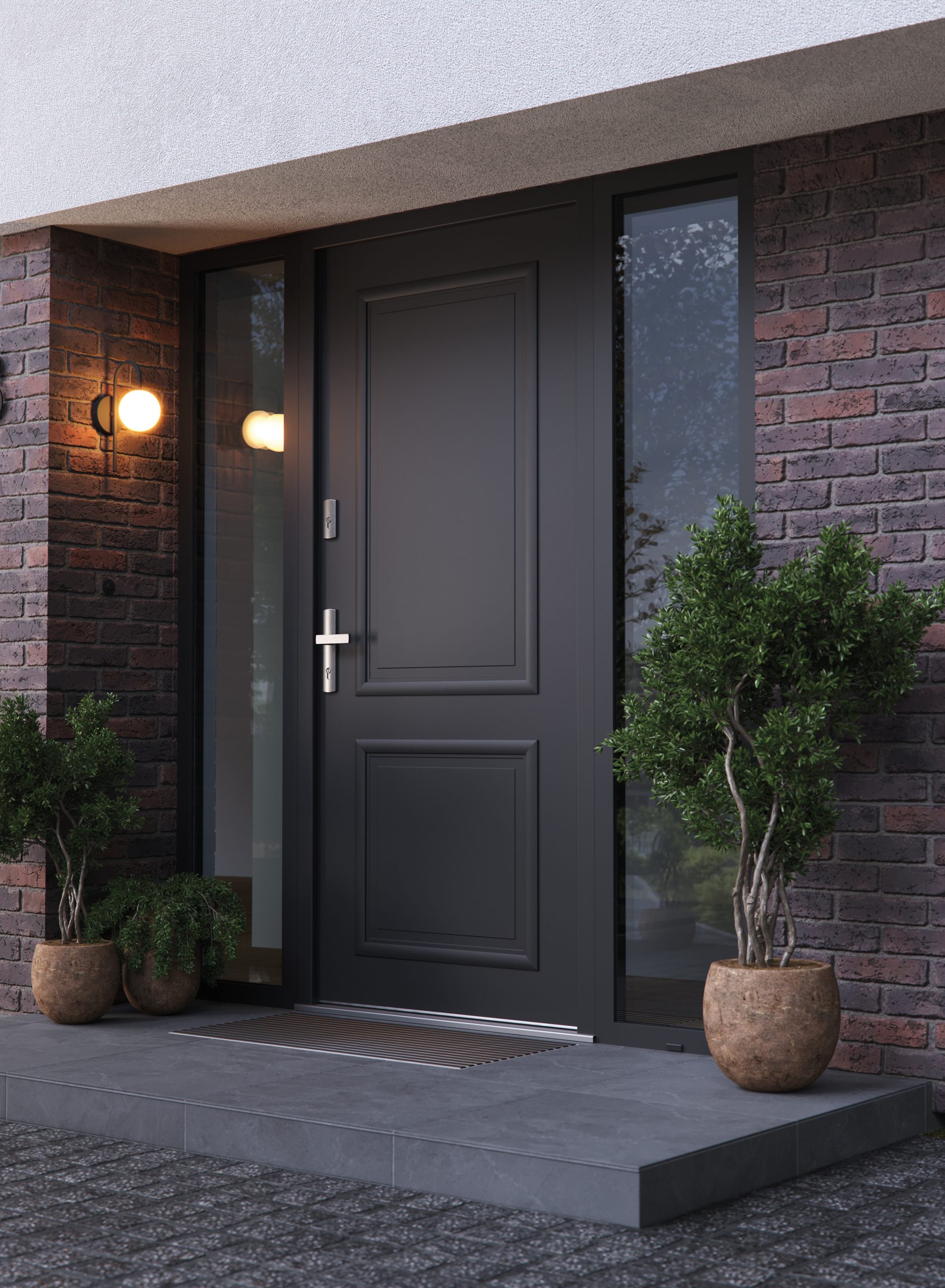 Smart home to zestaw rozwiązań wykorzystujących najnowszą technologię w celu podnoszenia Twojego komfortu życia i poczucia bezpieczeństwa. Drzwi PORTA THERMO mogą być wyposażone w inteligentny zamek WINKHAUS SMART EAV3, który rygluje drzwi od razu po ich zamknięciu (bez potrzeby użycia klucza) oraz czytnik linii papilarnych ekey dLine.